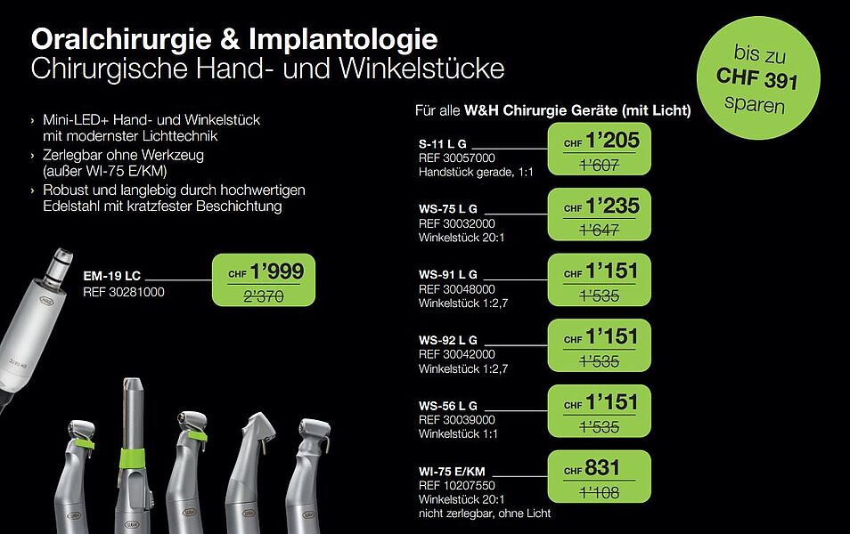 W&H - Chir. Hand- & Winkelstücke mit LED → jetzt bestellen !